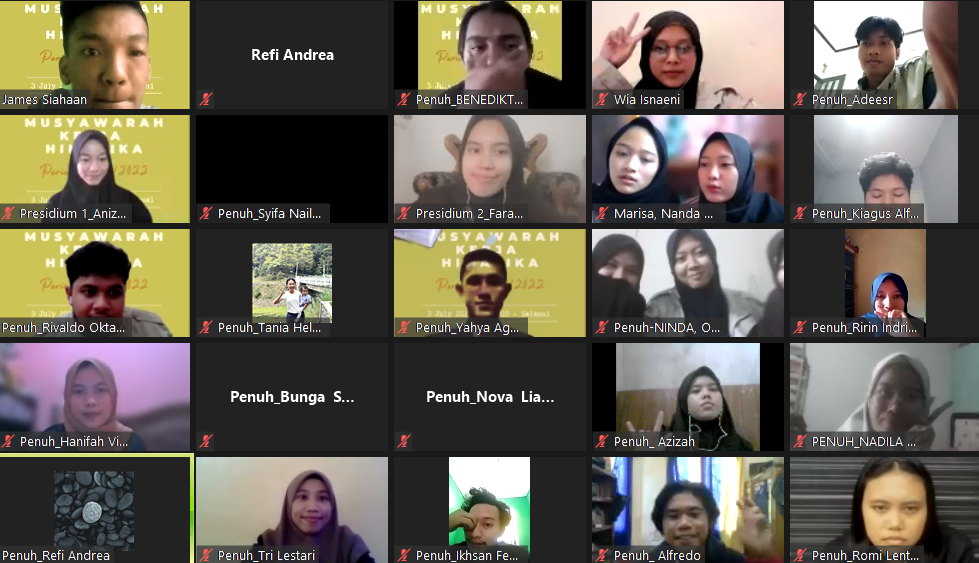 HIMATIKA NEWS – Salah satu rangkaian kegiatan HIMATIKA ITERA adalah Musyawarah Kerja (Muker). Musyawarah Kerja HIMATIKA ITERA 2021/2022 dilaksanakan Sabtu (3/7/2021) melalui konferensi video zoom meeting. Peserta Musyawarah Kerja dihadiri oleh seluruh anggota HIMATIKA ITERA dengan ketentuan persidangan tertentu.